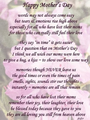 Mother's hold a special place in our hearts and I will certainly miss my mom this weekend