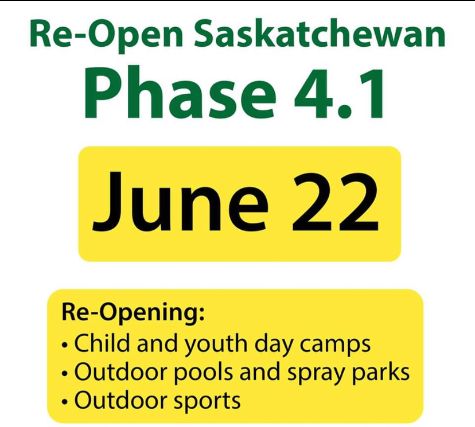 Premier Scott Moe, " Today, kids and parents can begin to enjoy more activities outdoors with pools, spray parks, sports and day camps re-opening as part of Phase 4.1 of Re-Open Saskatchewan.