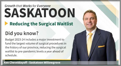 Budget 2023-24 includes a major investment to fund the largest volume of surgical procedures in the history of our province, reducing the surgical waitlist to pre-pandemic levels a year ahead of schedule.