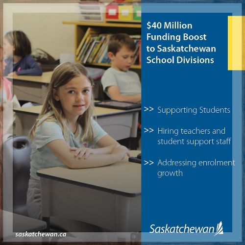 Our government is making a further investment to support our growing schools across our province as Saskatchewan continues to grow at its fastest pace in more than a century!