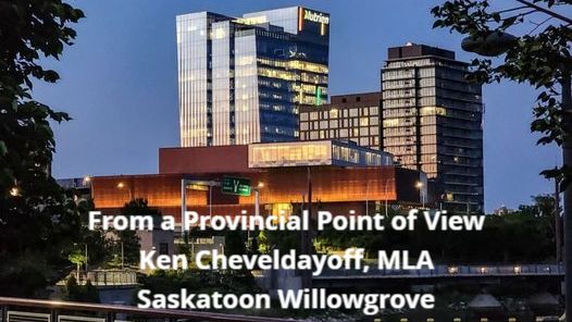 If you have questions, concerns or feedback, I invite you to contact my office at ken.cheveldayoff.mla@sasktel.net or call 306.651.7100.