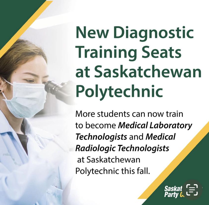 The Government of Saskatchewan has provided funding for 10 additional MLT seats and eight additional MRT seats in Saskatoon to help meet the need for these specialized services.