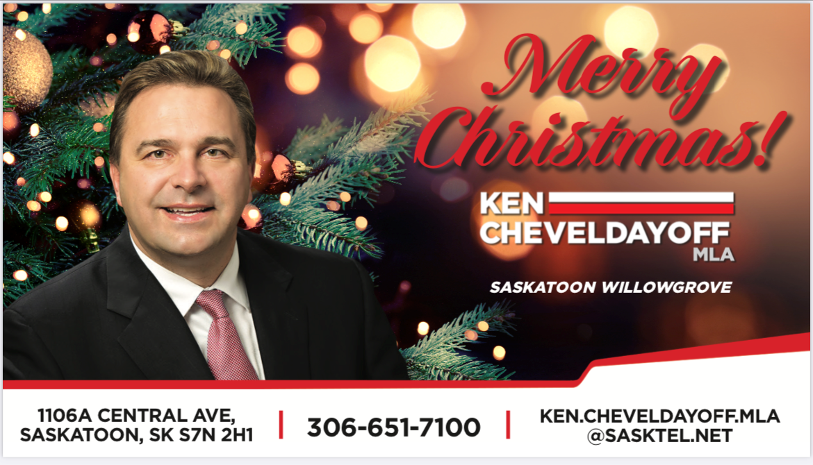Christmas is a special time of year when we celebrate faith, family, and goodwill towards others. It is also a time to be thankful for the beautiful province in which we live and for the freedoms we enjoy. Regardless of the special traditions you may embrace, please be mindful of those who cannot be home with their own families and friends. I offer my deepest thanks and Merry Christmas wishes to members of the Canadian Forces here at home or deployed overseas. Special thoughts to all those affected by the wars Israel and Ukraine.