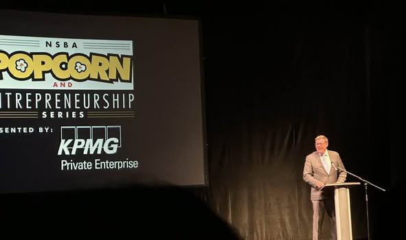 Evan Bray expertly Emceed the fantastic evening at the NSBA Popcorn and Entrepreneurs. It was a pleasure for Trish and I to join Paul J. and Carol Hill, along with their daughter Rosanne, along with a full house.