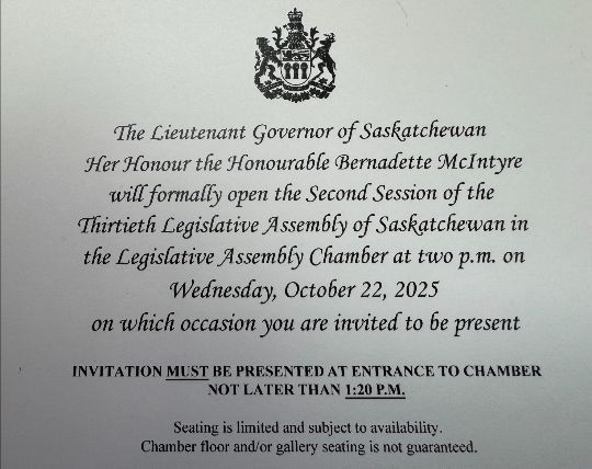 Would you like to attend the opening of the Second Session of the Thirtieth Legislative Assembly of Saskatchewan?