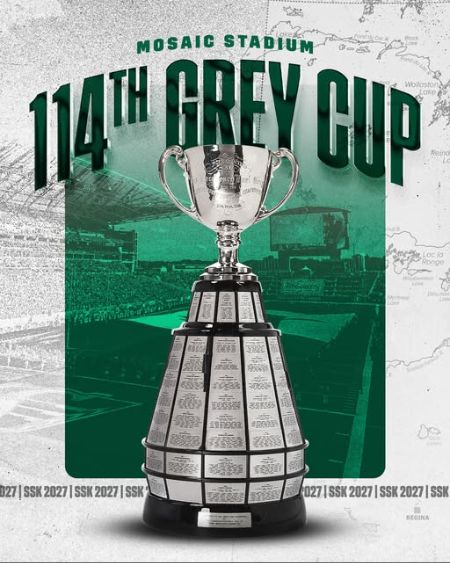 In 2027, the Grey Cup returns to Saskatchewan. The 114th Grey Cup back to the Heartland!