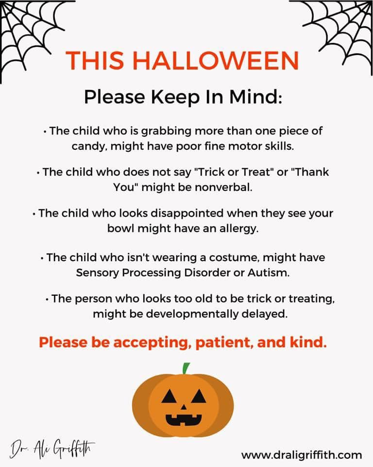 So if a child knocks on your door and holds up their blue pumpkin, know that there is a good chance they won’t say “trick or treat” or “thank you”. They deserve to enjoy Halloween like everyone else.
